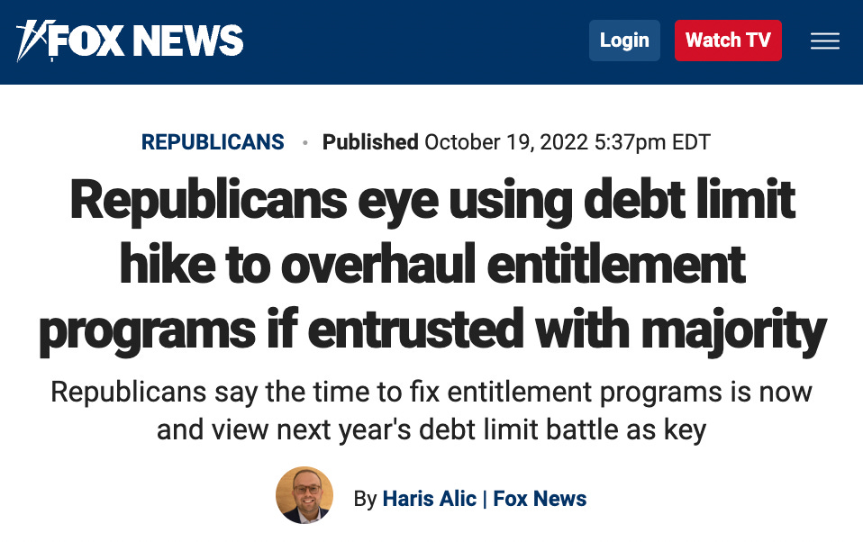 Fox News, which now claims Biden is lying when he says Republicans are linking entitlement cuts to the debt ceiling, reported this was the plan in October: