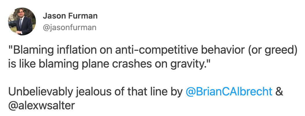It's been fashionable for many economists, even those who worked for Democratic administrations, to dismiss the contribution of corporate greed to inflation. Jason Furman, chairman of the Council of Economic Advisors for Obama, tweeted this in February: