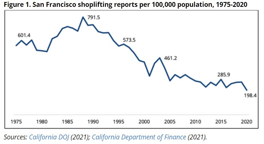 These claims, however, are not reflected in the citywide crime data. In 2020, shoplifting in San Francisco reached its lowest level since statistics began being collected 45 years ago.
