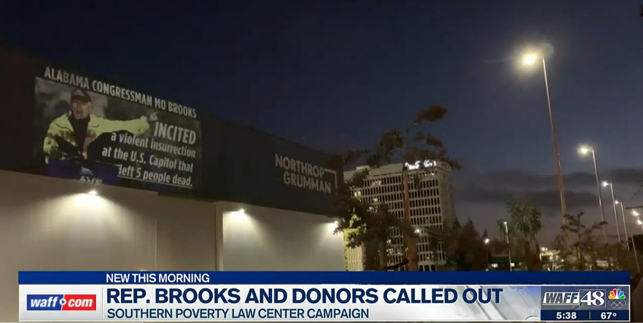 The Southern Poverty Law Center (SPLC), a civil rights organization based in Alabama, is calling on the four companies to cut off support for Brooks. SPLC sent letters to the CEOs of Northrop Grumman, Boeing, Lockheed Martin, and Raytheon on June 10, asking them to "immediately sever ties with Rep. Brooks and pledge to never again provide him with any future direct or indirect financial, material and/or moral support."