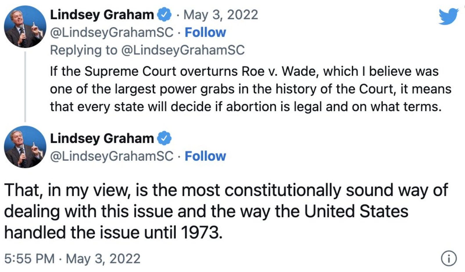 In May, Senator Lindsey Graham (R-SC) clearly stated that he believed Roe v. Wade should be overturned and the abortion issue should be returned to the states.