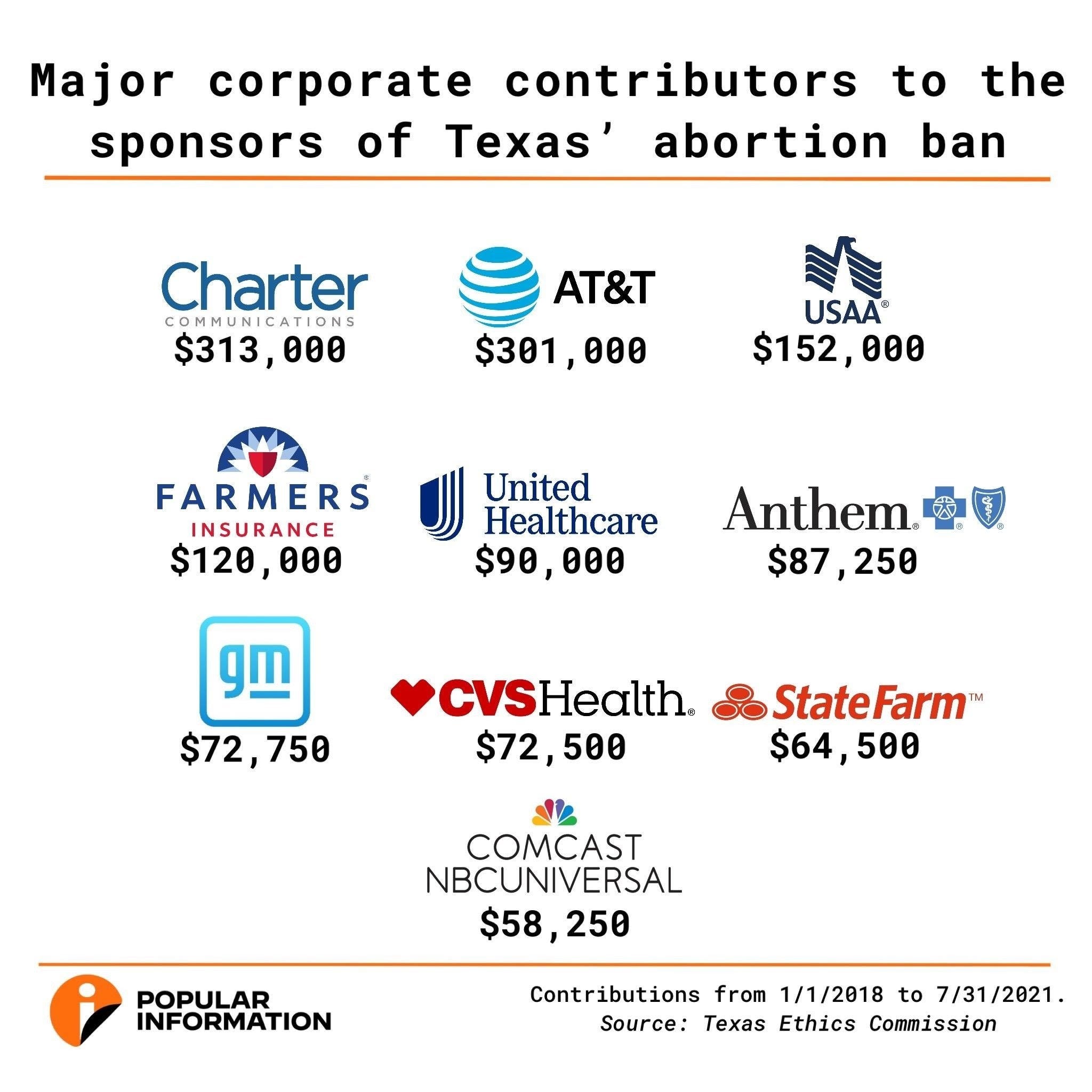 The other large corporate donors to the sponsors of Texas' abortion ban