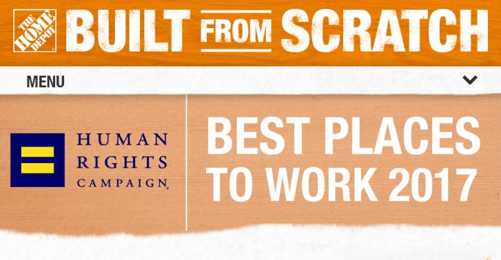 Home Depot is less demonstrative than the other companies on this list but did put out a press release touting its ranking by HRC.