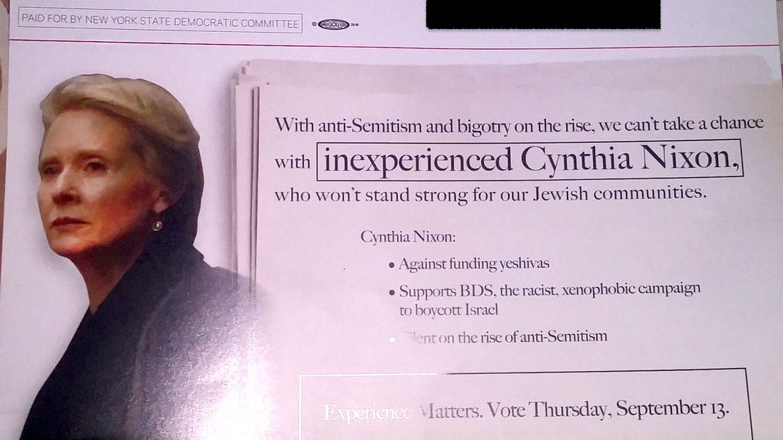 With election day approaching, the New York Democratic Party recently sent out a mailer implying that Nixon is anti-Semitic. When the mailer began to create controversy, the state party backtracked, calling the mailing a "mistake." Nixon was not impressed.