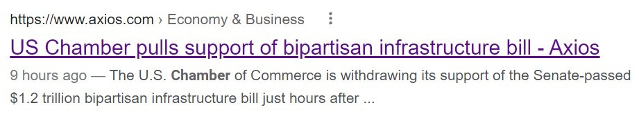 In a late-night press release, the Chamber attempted to claim that Axios' report was false and the organization still supported the BIF. But this is a semantic game. The Chamber now says it only supports the BIF "as a stand-alone bill unlinked to the proposed tax and spend reconciliation bill." But, as Bradley's memo to the board acknowledged, that is "no longer a realistic possibility." Therefore, the Chamber's support is only theoretical. It now is opposed to the BIF.
