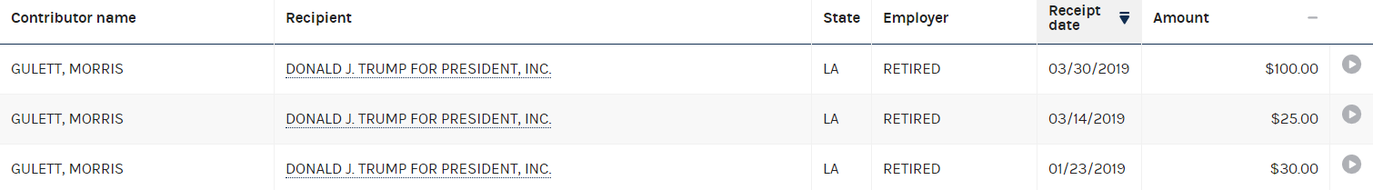 The Trump campaign has accepted three contributions in 2019 from Morris Gulett, a neo-Nazi.
