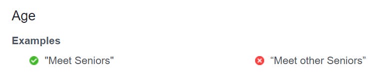 Here’s an example Facebook provides about prohibited phrases identifying a users’ age.