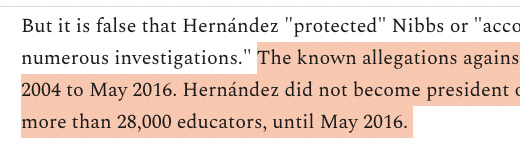 The DeSantis campaign is deeply committed to the fiction that a 2019 Miami Herald article supports its claims. It does not. The article describes the monstrous conduct of Nibbs and the failure of criminal and civil investigators to get him out of the school system. You can read it here.