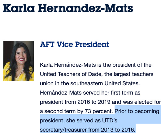 The DeSantis campaign suggested Popular Information's report that Hernández took office as president of the Miami-Dade teachers' union (UTD) on May 2016 was inaccurate. Popular Information's report, however, is correct. Hernández was elected to the position in March 2016 and took office two months later.