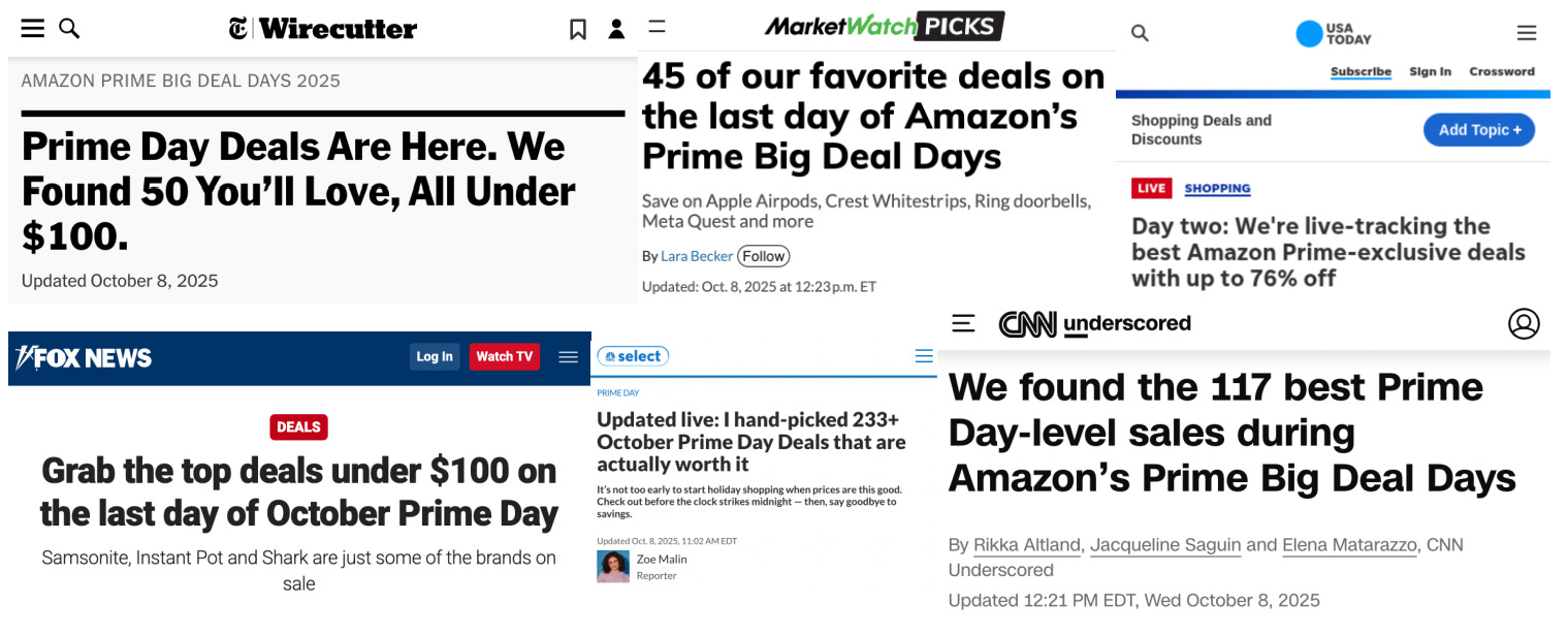 When media outlets create lists of featured deals, they include links to the product on Amazon. If a reader clicks the link and makes a purchase, the media outlets receive a cut. This has become a big business. In 2024, Wirecutter, the New York Times’ shopping recommendation site, reportedly drove $1 billion in gross merchandise sales. In the second quarter of 2025, the New York Times reported $70.5 million in affiliate sales revenue, mainly from Wirecutter referrals to Amazon and other retailers.