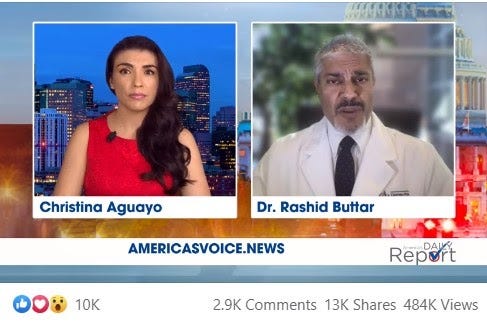 In a video that has been viewed nearly 500,000 times, Buttar claims that hospitals are intentionally killing people. There is a conspiracy, Buttar says, to drive up the death rate to marshall support for a mandatory vaccine.