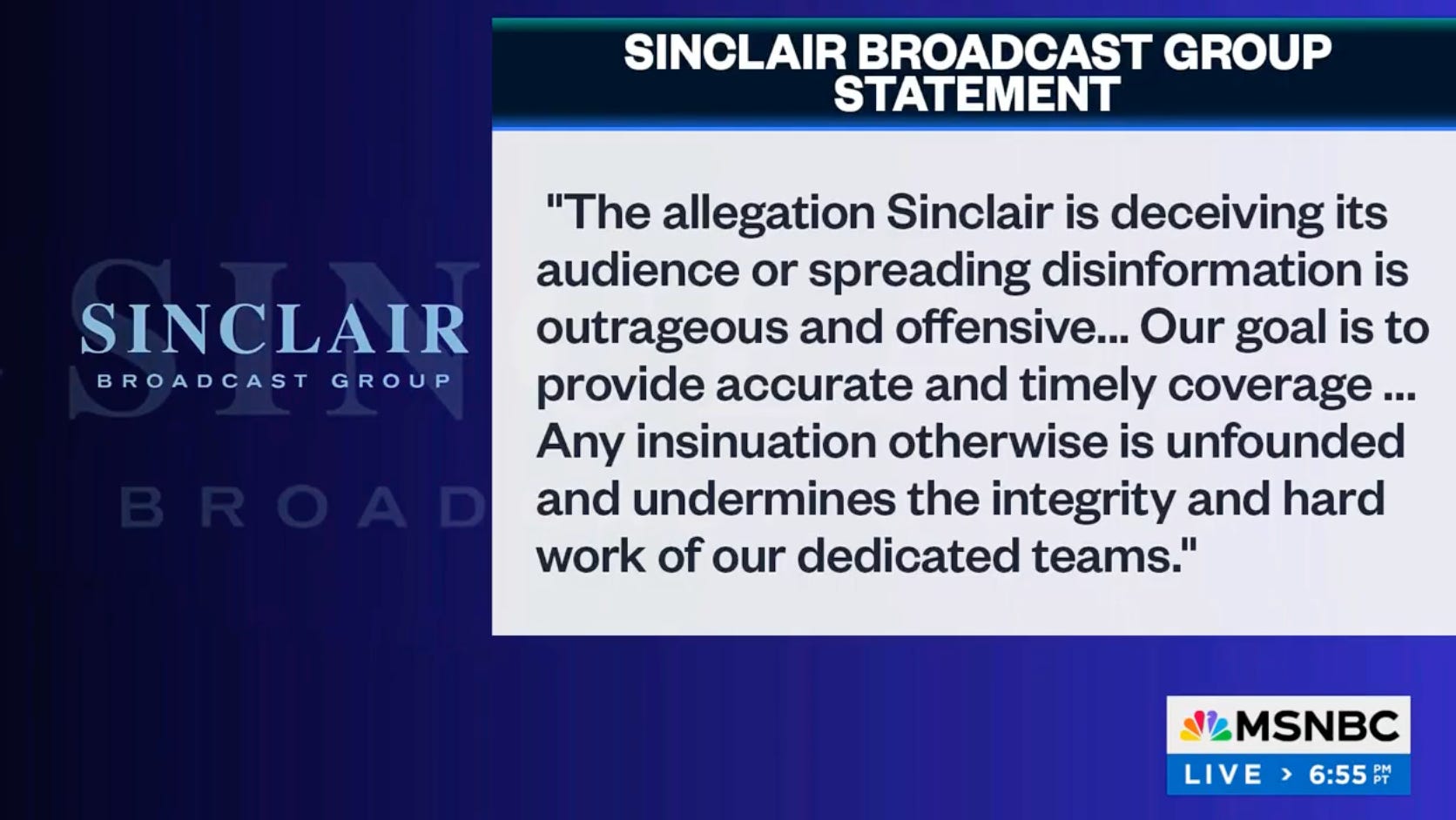 And on Wednesday night, I appeared on MSNBC's Alex Wagner tonight to discuss Sinclair's conduct.