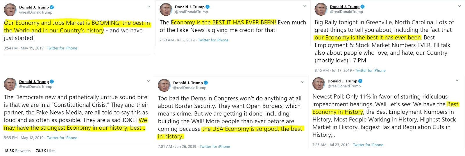 Donald Trump repeatedly claims that he is presiding over "the greatest Economy in U.S. history."